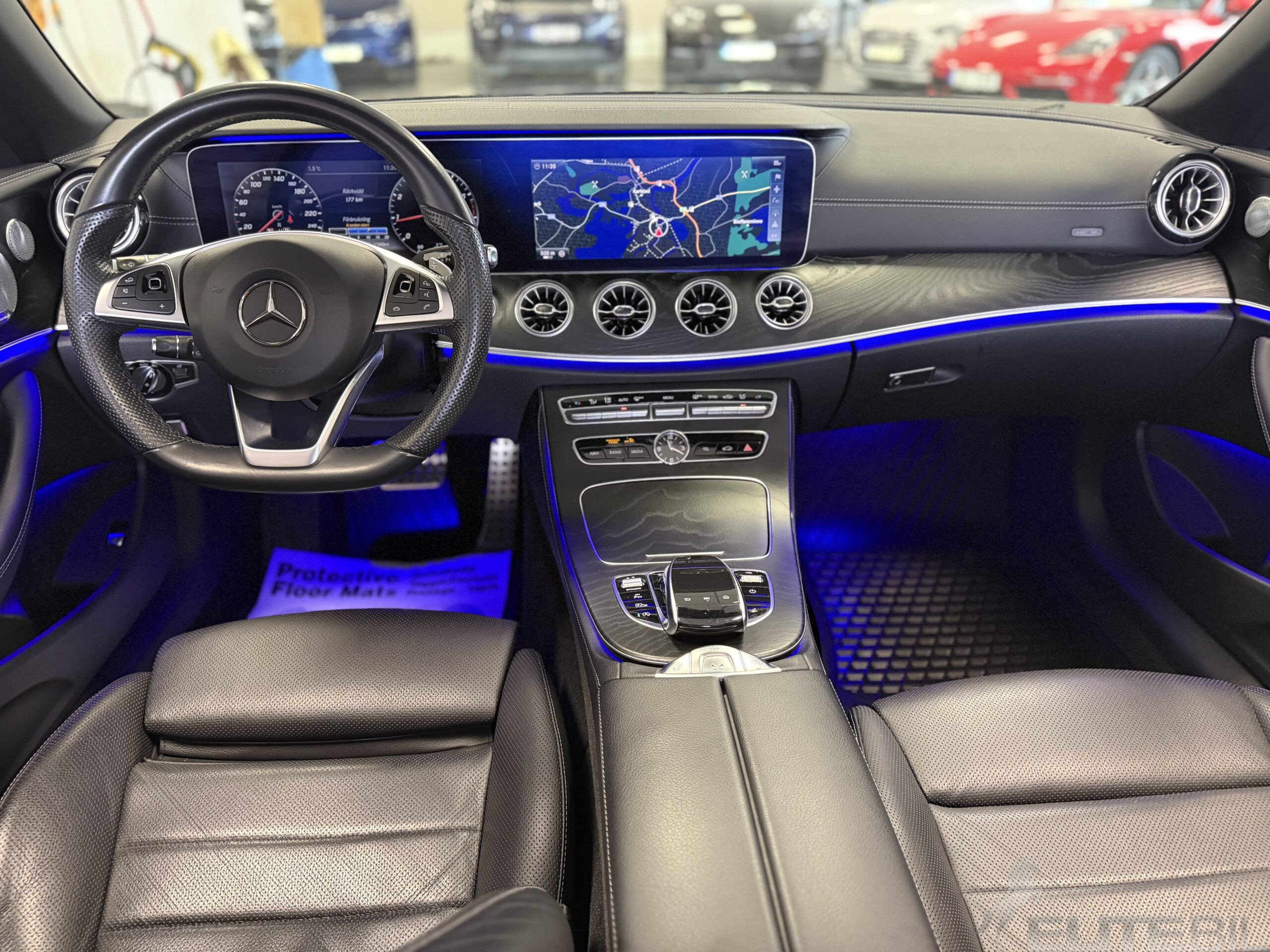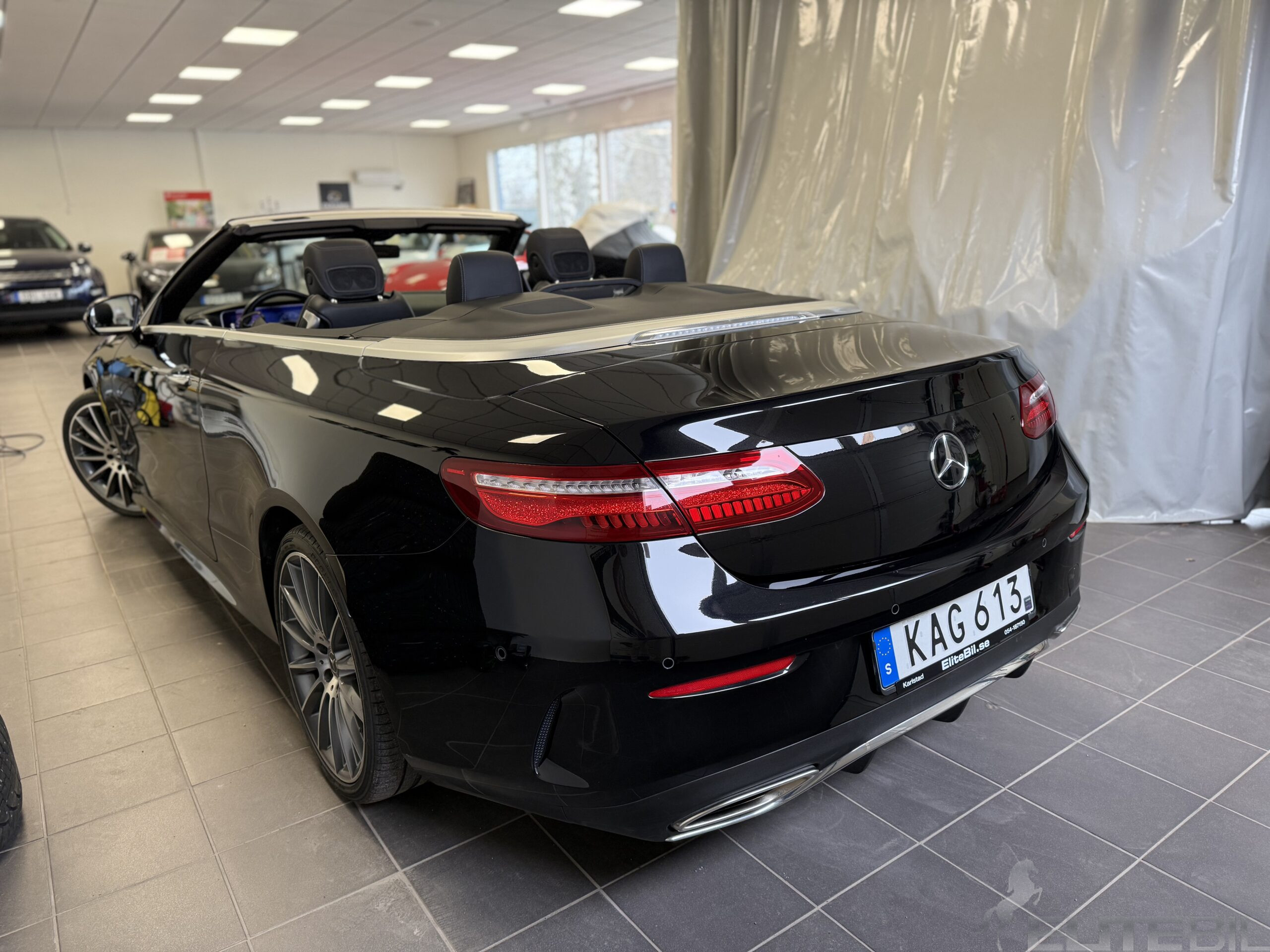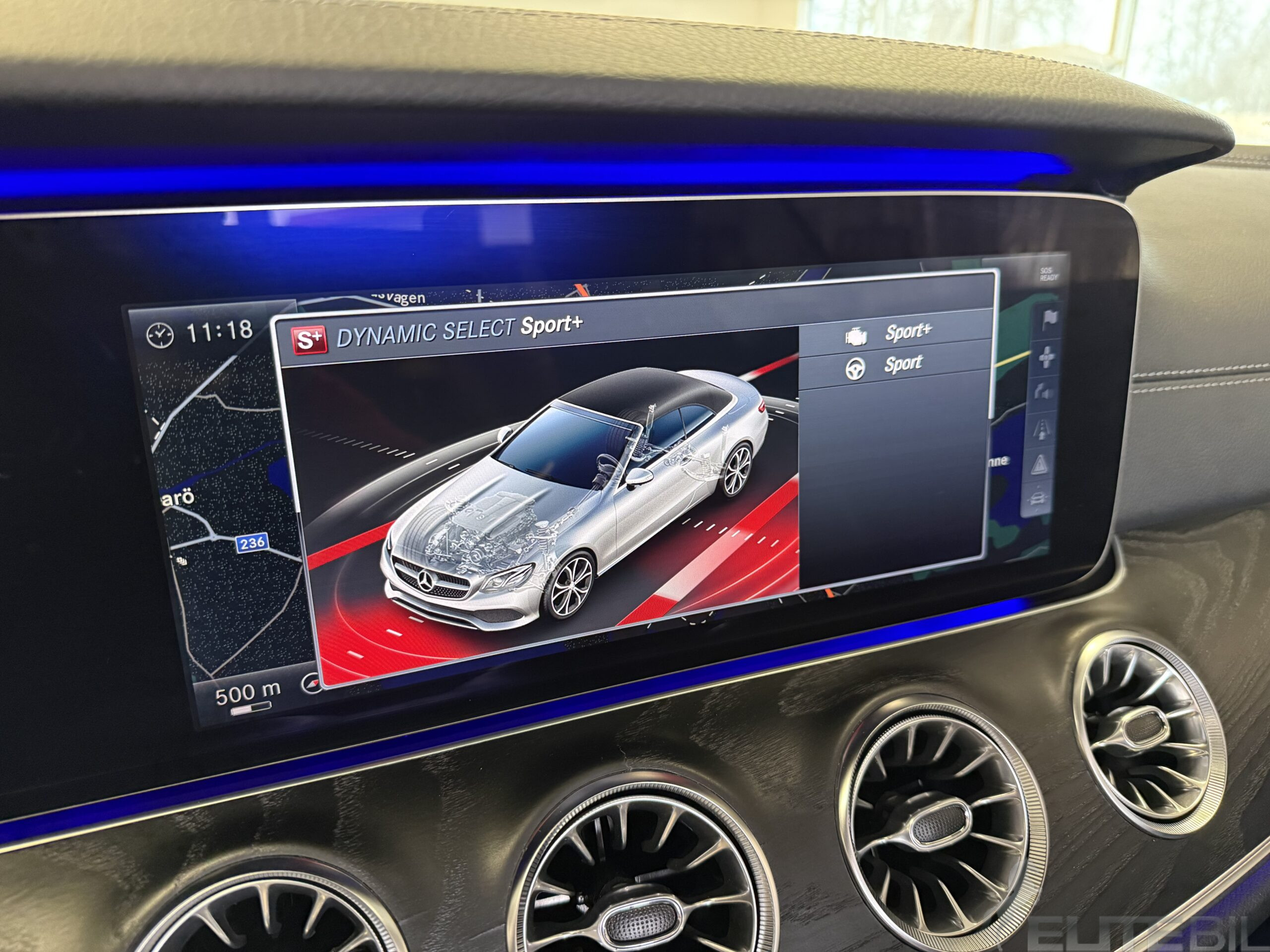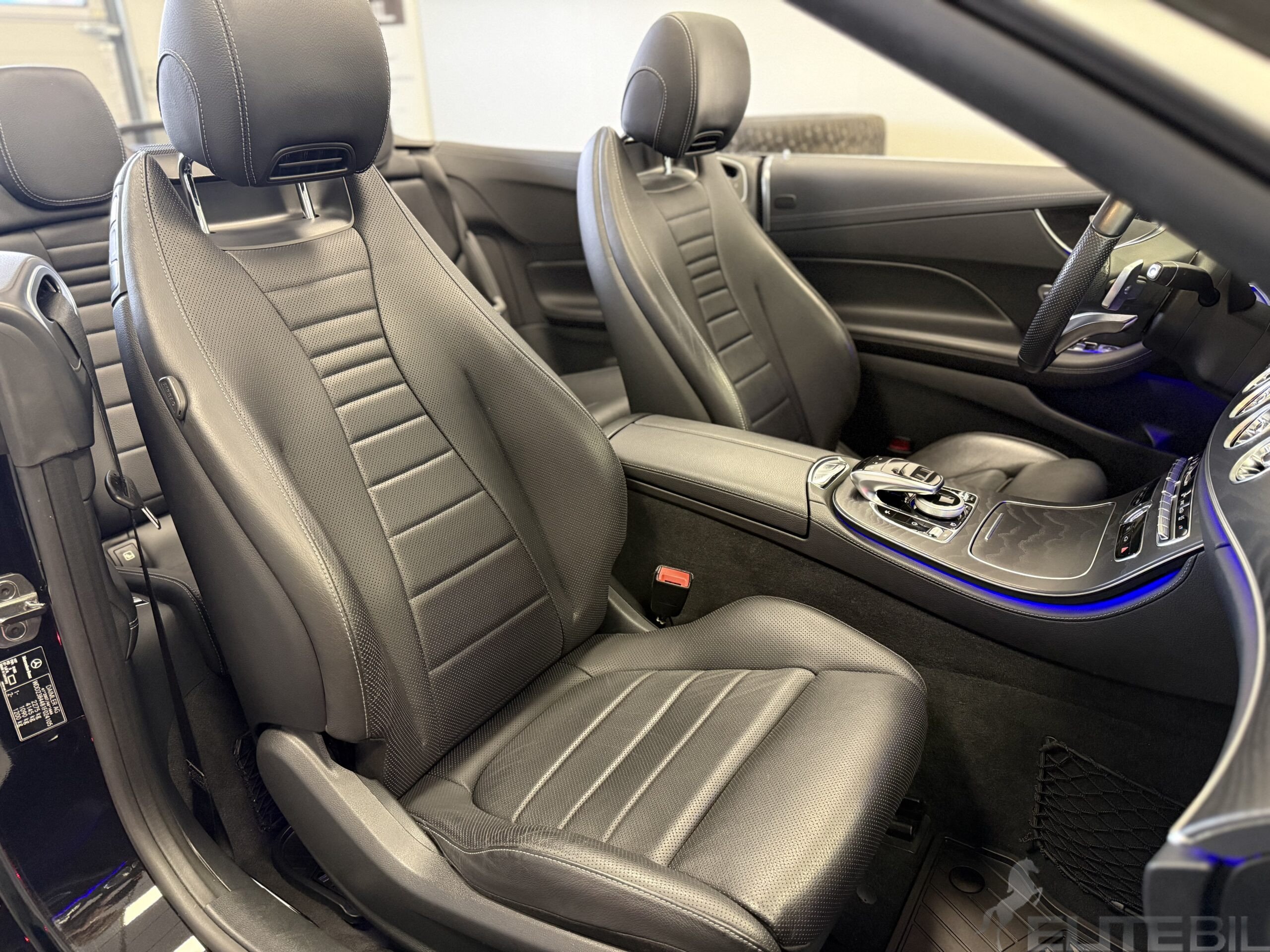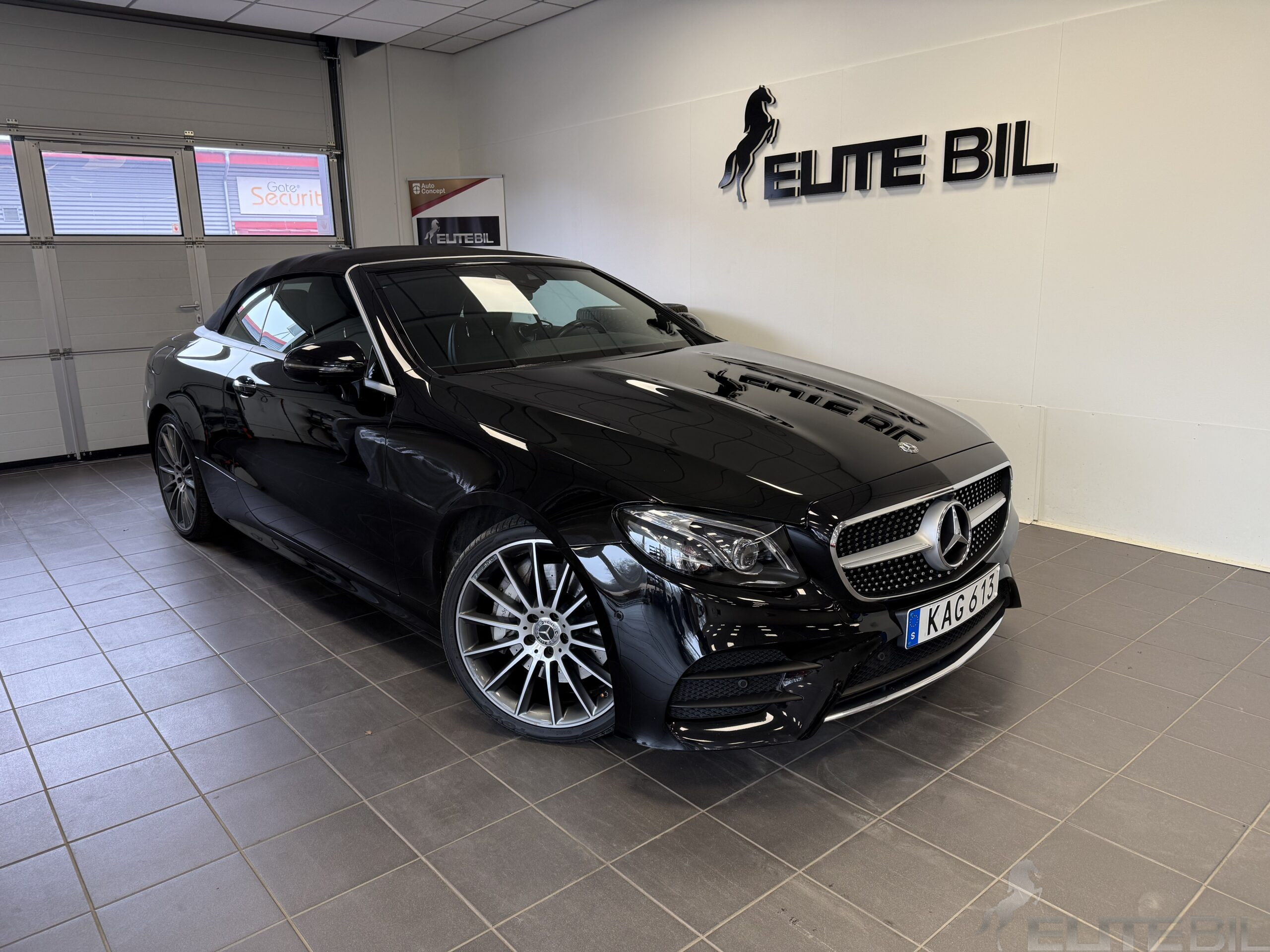 MB E300 Cabriolet AMG interiör och exteriört sportpaket, denna skönhet kommer i snygga kulören Obsidian svart metallic och är i stort sett full utrustad! 6694mil i skrivande stund, 360-kamera, Belysningspaket, Spegelpaket, Parkeringspaket, Sportpaket, Keyless entry/Go paket samt Cabriolet komfortpaket, 20” AMG fälgar multieker design, Burmester sound system, Motor med utökad effekt, Svart skinnklädsel, Multikomfort säten med ventilation och värme fram, Paneler i svart Ask, EPS Styrning, Aktiv parkeringshjälp, Supersport ratt med växelpaddlar, Navigations system, Apple CarPlay, Dynamiska LED strålkastare med helljus assistent, i-Size, Genomlastningslucka bak, Airscarf system, Tygsufflett, Kollision varning system, Euro 6 teknologi, 9-stegad automatlåda, Eco start/stopp funktion, Adaptivt bromsljus, Aktivt fotgängarskydd, Dödvinkelassistent, Motorljud via högtalare, Keramiskt lack behandlad av Sonax även suffletten är behandlad, Digital servicebok med service endast på auktoriserade MB verkstäder från ny enligt följande: 432mil 190514, 855mil 200601, 6080mil 240223, 6500mil 250409.